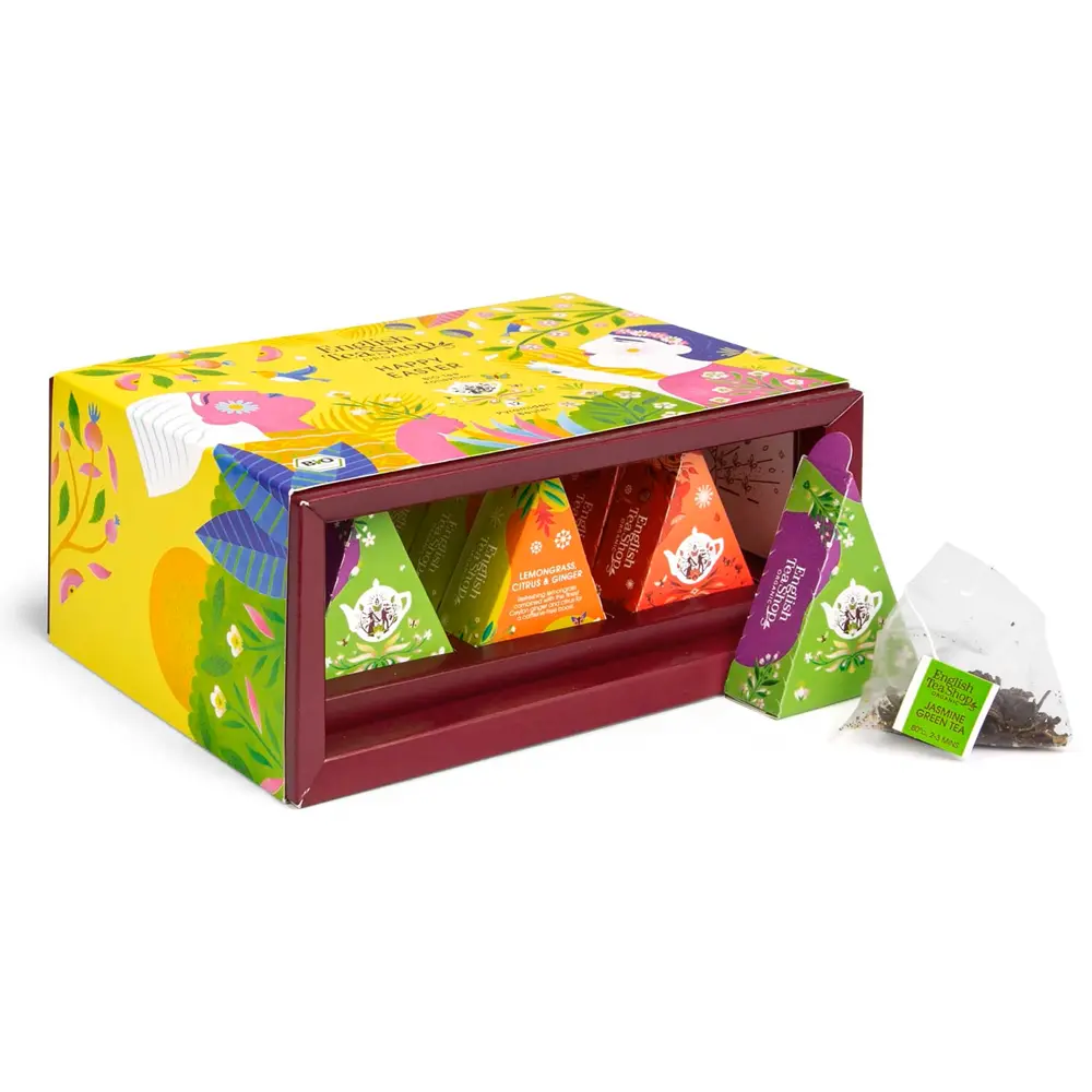 - MODERNES DESIGN: Das schön gestaltete, hochwertige Tee Präsent zum Osterfest sieht schick aus und hält die einzeln in dreieckigen Schachteln verpackten Teebeutel sicher am Platz.