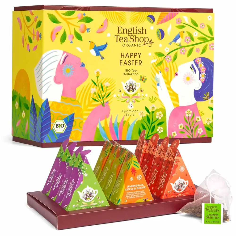 🎁 Eine großartige Auswahl der beliebtesten Frühlingstee Mischungen von English Tea Shop hat der Osterhase in diesem Teegeschenk versteckt. In der modern in Osterfarben designten Geschenkbox findet jeder Teeliebhaber seine neue Lieblingssorte. Ein perfektes Geschenk zu Ostern, als Ostergruß oder zum Kennenlernen neuer Teesorten von English Tea Shop.