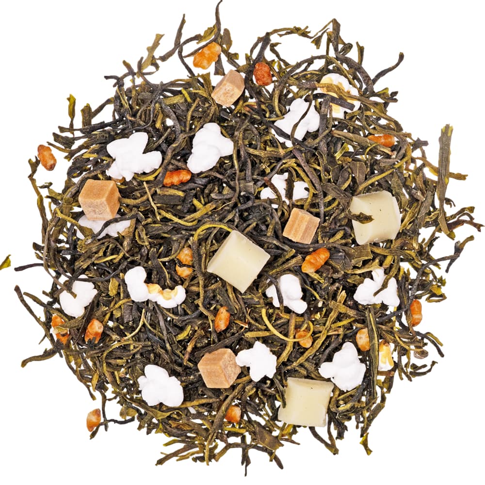 Sanft im Auftakt, cremig-süß im Abgang: Ein Hauch von Karamell und Vanille trifft auf die Leichtigkeit des grünen Tees. Popreis und gerösteter Reis bringen eine feine Röstnote, weiße Schokolade schenkt zarte Cremigkeit. Die Confiserie-Noten verleihen dieser Mischung Wärme und Eleganz – ein Genuss, der sich samtig auf die Zunge legt und mit jedem Schluck vertrauter wird.